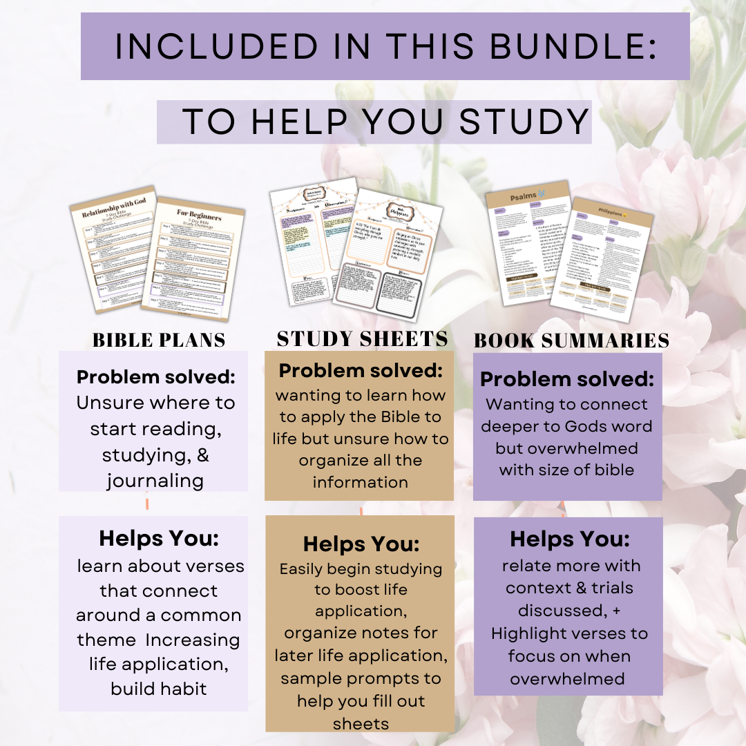 This bundle has so many helpful tools that have saved me so much time in my Bible. I feel like I'm actually understanding the Bible and feeling closer to God more than ever. Thank you so much!